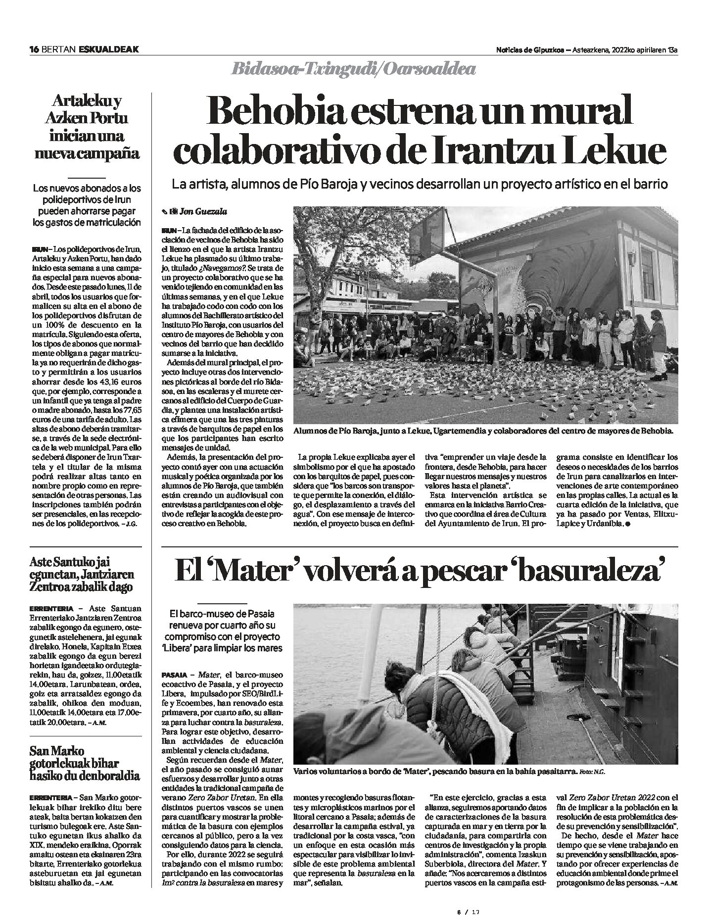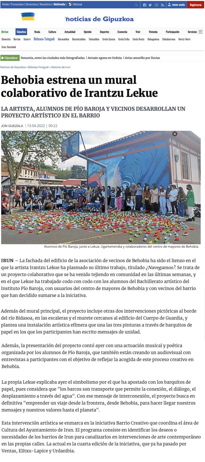 La iniciativa cultural ‘Barrio creativo’ celebrará en Behobia su cuarta edición dinamizada por Irantzu Lekue febrero 4, 2022